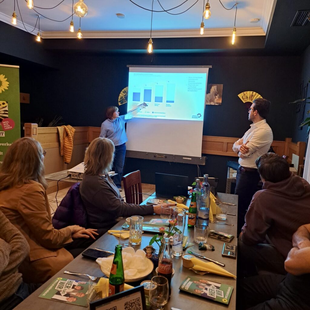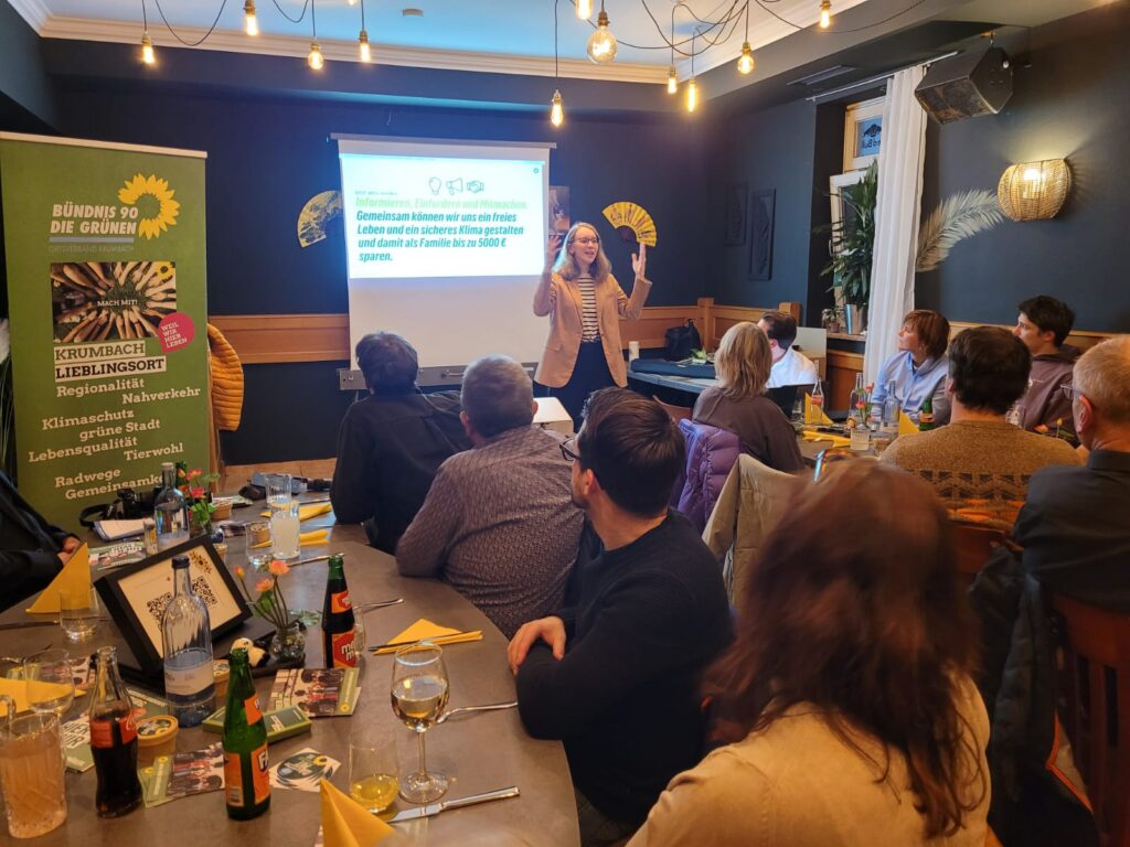 Besonders inspirierend war der Vortrag von unserem Gast Eva Lettenbauer, Landtagsabgeordnete und Landesvorsitzende der Grünen Bayern, die anschaulich darstellte, welche Möglichkeiten es auch auf kommunaler Ebene in der Klimapolitik und in der Energiewirtschaft gibt. Im Anschluss stellten unsere Bürgermeisterkandidatin Claudia Lachenmayer und unser Ortssprecher Christopher Hiller das Wahlprogramm für den Ortsverband Krumbach vor.